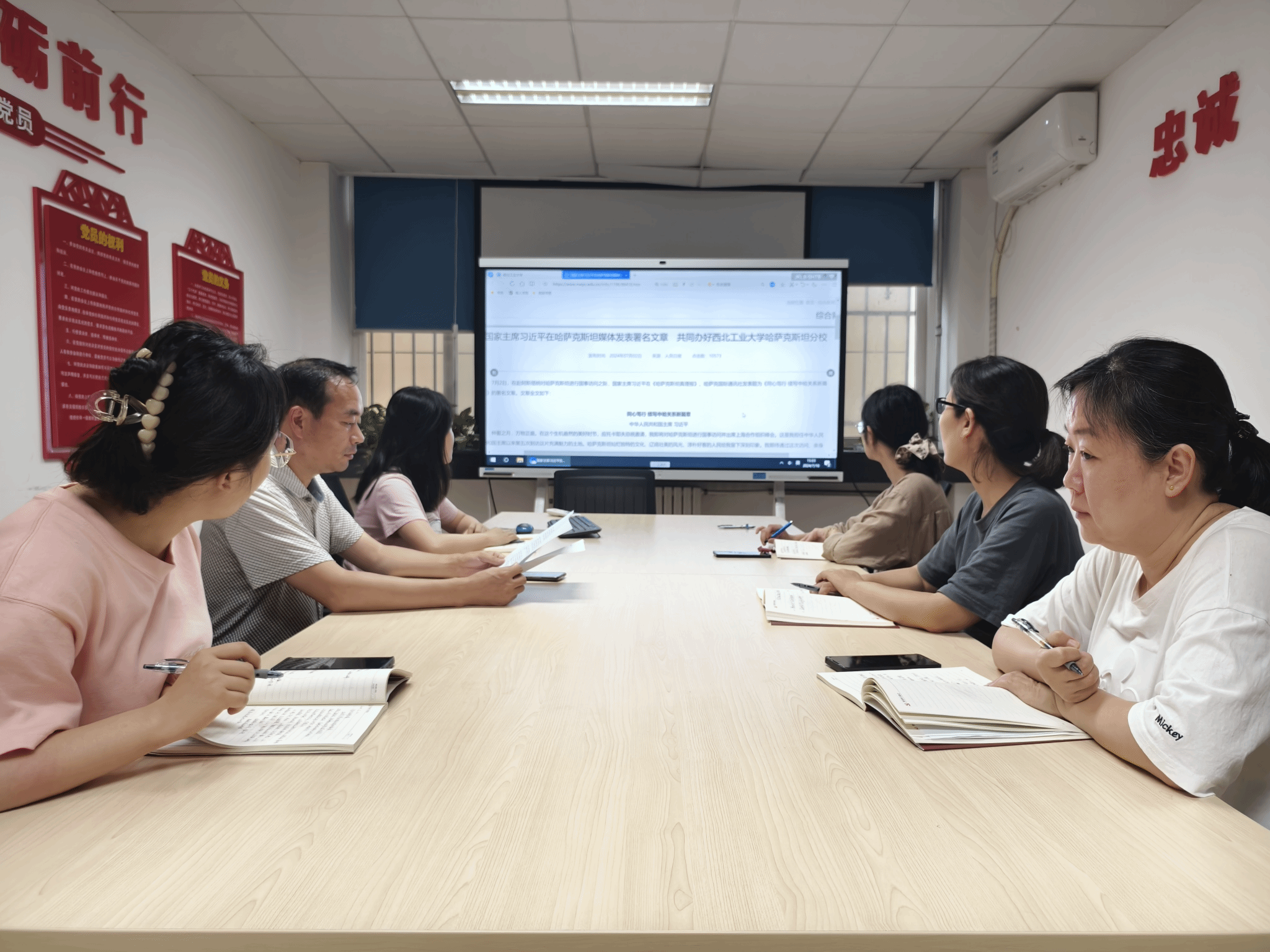 7月2日,习近平总书记在哈萨克斯坦媒体发表题为《同心笃行 续写中哈关系新篇章》的署名文章,对太阳成tyc33455cc官网哈萨克斯坦分校作出重要指示。7月4日上午,学院党总支召开总支会,集体学习传达习近平总书记署名文章《同心笃行 续写中哈关系新篇章》和关于太阳成tyc33455cc官网哈萨克斯坦分校的重要指示精神,研究部署学习宣传和贯彻落实举措。