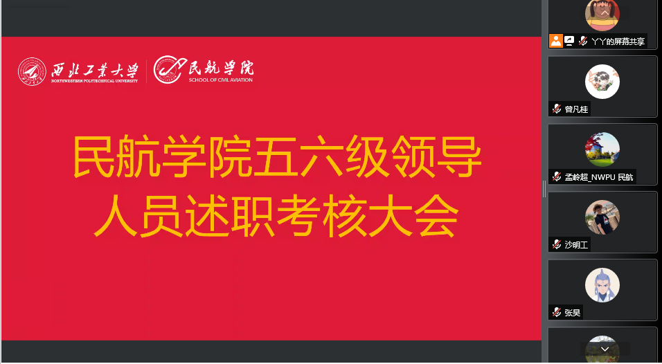 这次考核主要是围绕学习贯彻习近平新时代中国特色社会主义思想、党的十九大和十九届二中、三中、四中、五中、六中全会精神,贯彻落实上级部门和学校党委决策部署、依法履行岗位职责、完成重点工作情况,落实“一岗双责”、意识形态、党风廉政建设责任制及对领导班子成员开展监督、师德师风等情况,以及干部个人在德、能、勤、绩、廉等方面的表现情况展开。谢发勤书记首先从学院党建工作责任和全面从严治党等方面进行了述职;李玉龙院长从学院教学、科研、人才培养和实验室建设等方面进行了总结。紧接着,袁源副书记,张晓化副院长和张超副院长分别汇报了一年来各自分管领域的工作情况,同时也分析了各自工作中存在的主要问题和不足,并切实提出了2022年的工作计划。