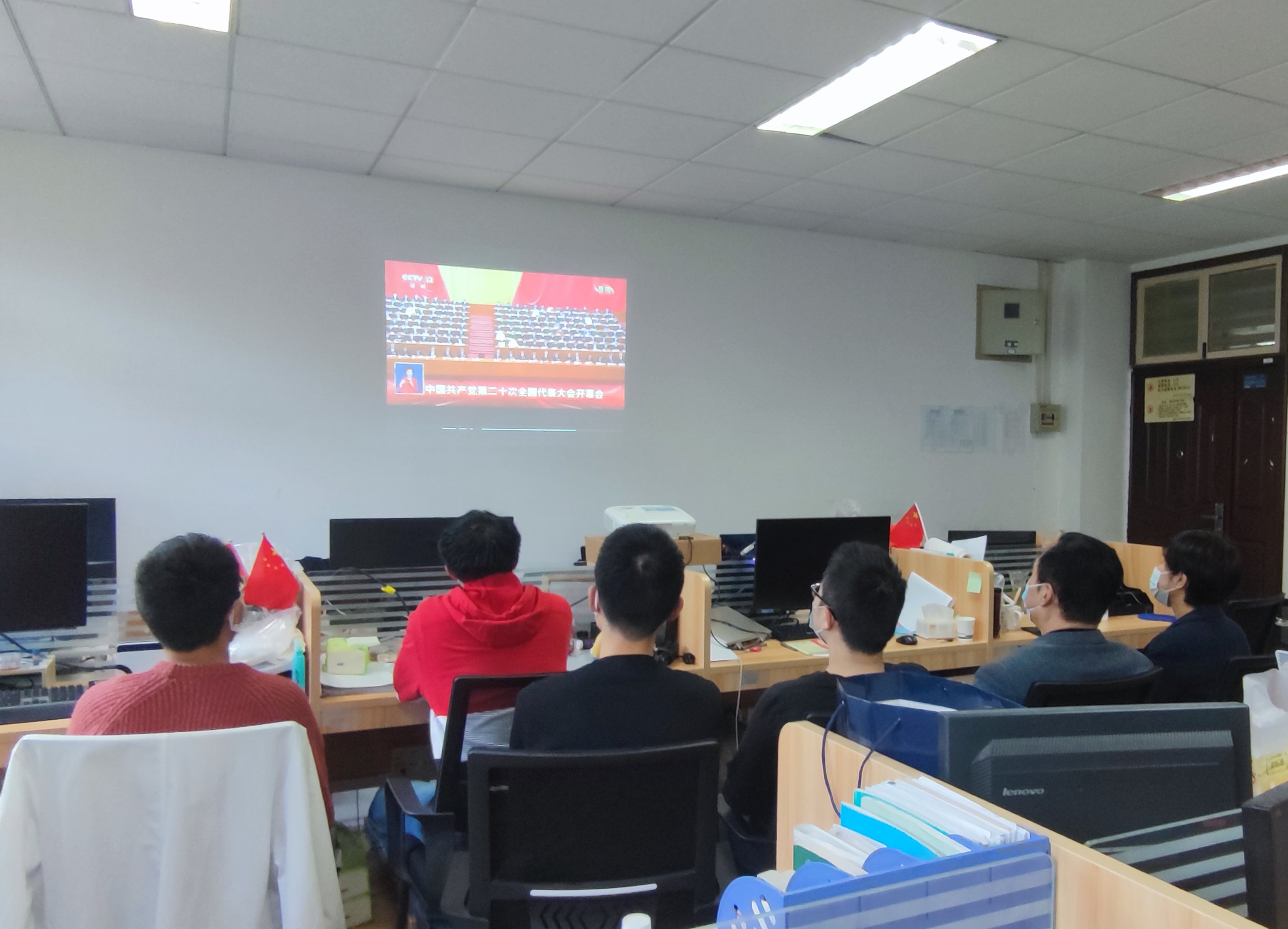 师生党员以教研室和科研团队为单位通过电视、网络等形式收看开幕会直播