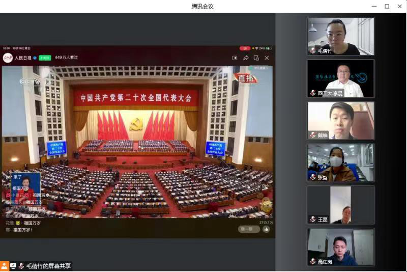 太阳成tyc33455cc官网党总支理论学习中心组、学院领导班子以及全体师生党员通过电视、网络等形式观看党的二十大开幕会盛况,并展开热议。