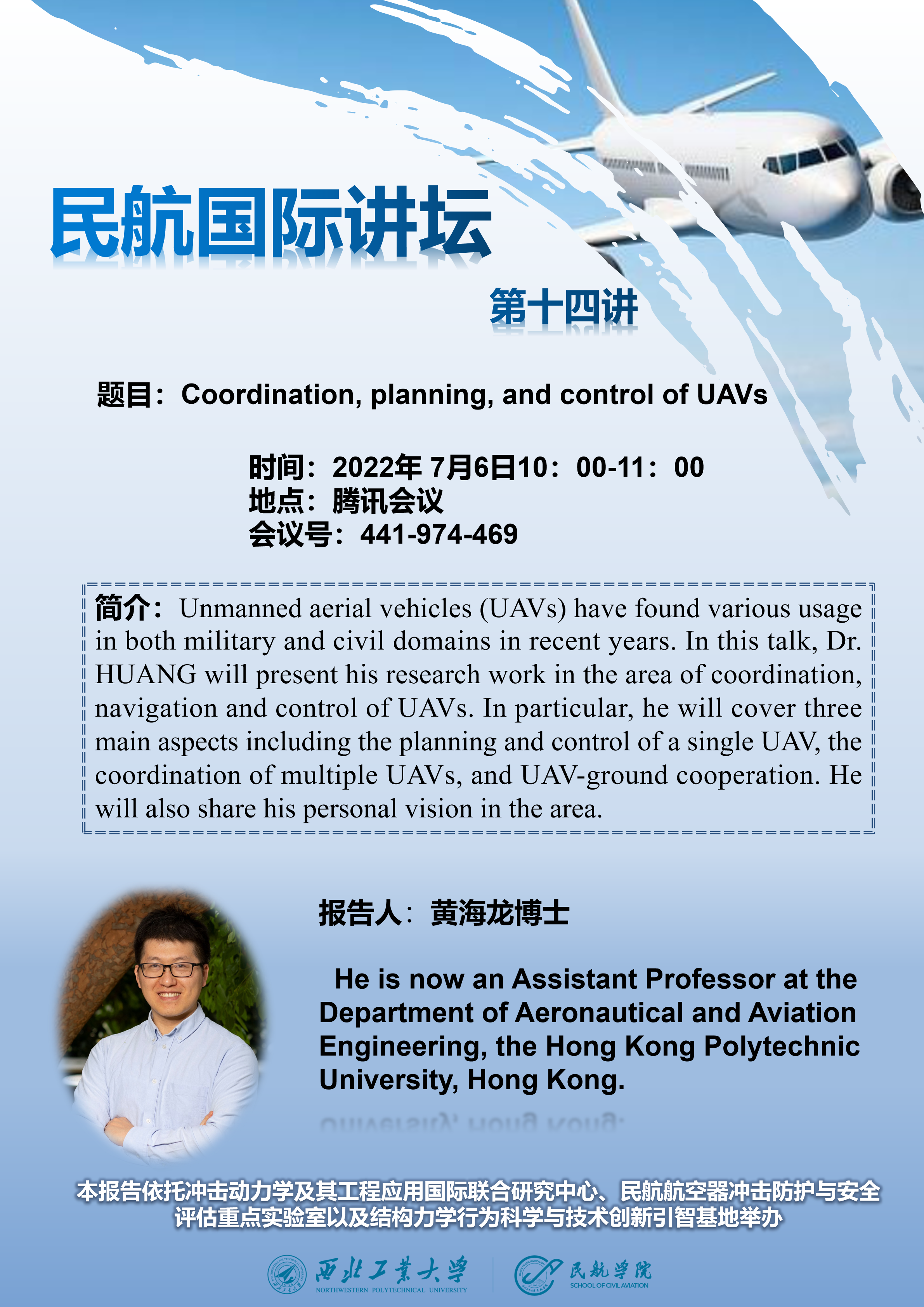 7月6日上午十点,太阳成官网拟线上举办“Coordination, planning, and control of UAVs”专题讲座,届时欢迎各位老师同学参会交流。报告信息如下: