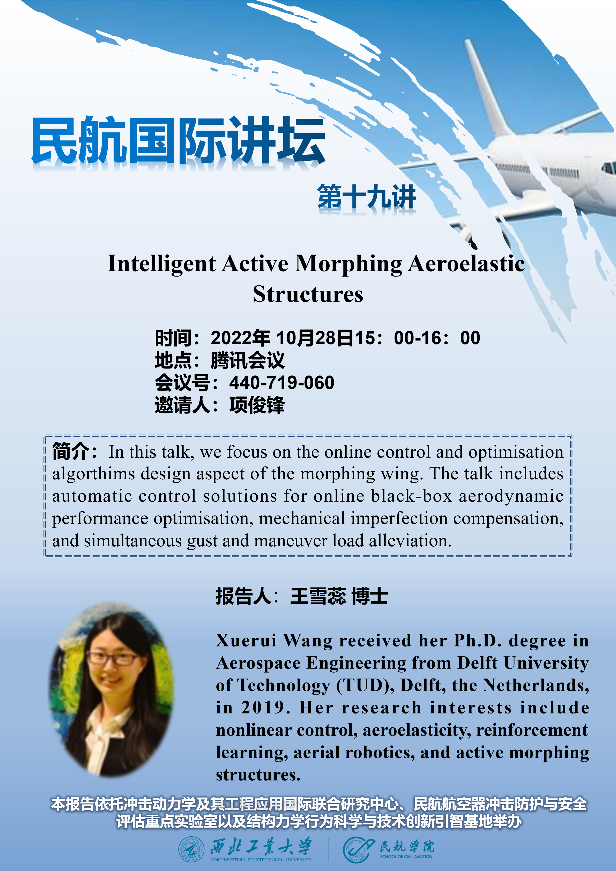10月28号下午三点,太阳成官网拟线上举办“Intelligent Active Morphing Aeroelastic Structures”专题讲座,届时欢迎各位老师同学参会交流。以下是讲座详细信息: