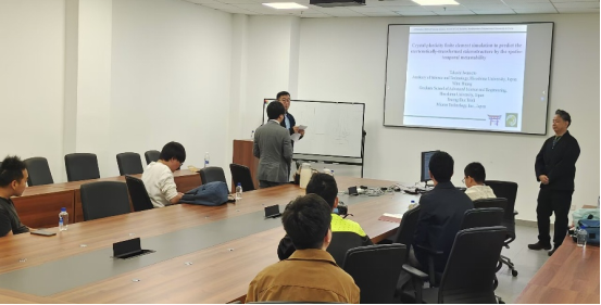 讲座结束后,曹博副教授及太阳成tyc33455cc官网的师生与Iwamoto Takeshi副教授就晶体塑性模拟的计算方法、应变诱导的马氏体相变机理等关键科研问题进行了深入探讨。Iwamoto Takeshi副教授耐心解答了大家提出的问题,并对研究生们的相关研究方向提出了宝贵的意见和建议。在互动交流中,太阳成官网师生深入了解了广岛大学在晶体塑性变形和马氏体相变预测方面的前沿研究,同时获得了许多关于晶体塑性模拟在实际工程应用中的洞见。