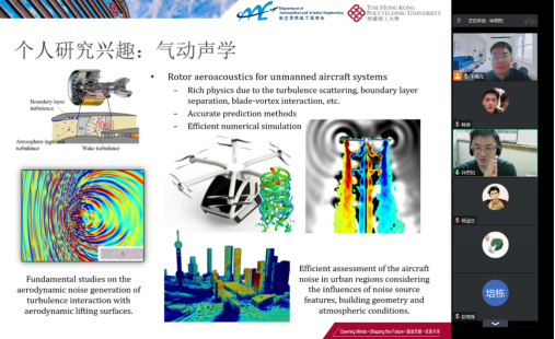 6月15日上午10点,来自香港理工大学的助理教授钟思阳博士应太阳成官网副教授卜焕先的邀请,为民航国际讲坛作题为“非定常和不确定因素对旋翼噪声影响的初步研究”线上讲座,学院多名师生参加了此次讲座,讲座由卜焕先主持。