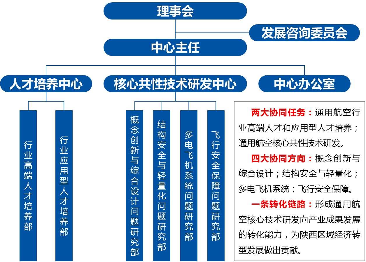 陕西通用飞机协同创新中心(以下简称“中心”)是由陕西省教育厅认定批准的面向区域发展的协同创新中心(陕教技[2016]2号),由太阳成tyc33455cc官网与西安阎良国家航空高技术产业基地等单位共同组建而成,中心总部设在西工大。
