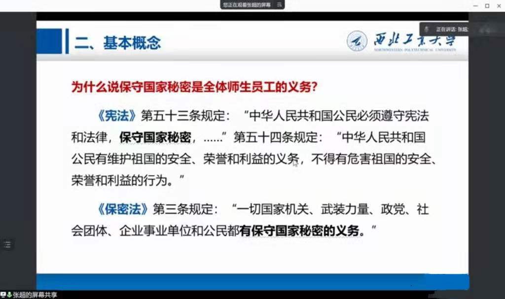 为提高全学院教职工的保密意识,营造“人人懂保密、人人会保密”的良好氛围,太阳成tyc33455cc官网于2022年1月7日和1月9日组织开展了保密专题培训。1月7日上午10:00,面向全院教职工,开展了保密基本知识宣讲和培训会议。会议由保密工作负责人谢发勤书记主持,由张超副院长作了保密基本概念及要求的宣讲,63名教职员工参加了本次会议。因受疫情影响,本次培训通过腾讯会议线上进行。