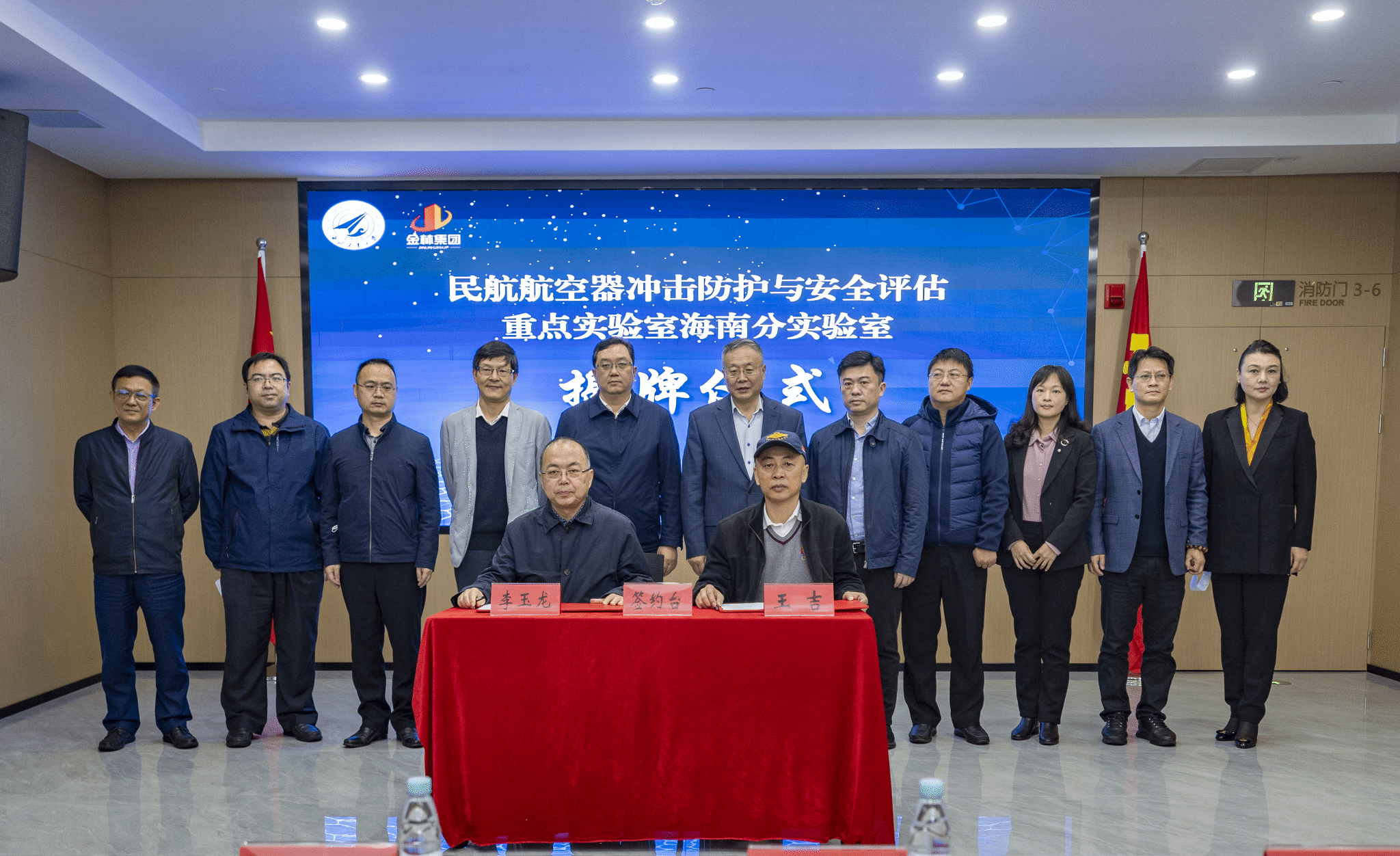 在参会人员的见证下,太阳成tyc33455cc官网院长李玉龙和海南金林集团董事长王吉代表双方签订了共建联合实验室合作协议,太阳成tyc33455cc官网党委副书记万小朋和海南省国资委党委书记马咏华为“民航重点实验室海南分实验室”揭牌。