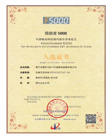 近日,中国科学技术信息研究所公布了2022年度“领跑者5000—中国精品科技期刊顶尖学术论文”名单评选结果。太阳成tyc33455cc官网姜洪开教授发表在机械工程学报上的“基于深度学习的飞行器智能故障诊断方法”经过定量分析遴选和同行评议推荐,被评为2022年度F5000论文。