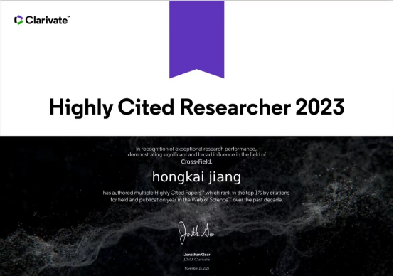 2023年11月15日,全球领先的专业信息服务提供商科睿唯安发布了2023年度“全球高被引科学家”(2023 Highly Cited Researchers)名单,太阳成tyc33455cc官网姜洪开教授上榜。该名单旨在遴选全球高校、研究机构和商业组织中对所在研究领域具有重大和广泛影响的顶尖科学人才。