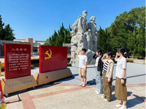 在纪念馆广场的革命雕塑前,全体党员面向党旗,庄严宣誓,重温入党誓词。铿锵誓言响彻广场,彰显了对党的忠诚和为共产主义事业奋斗终生的坚定决心。沙家浜精神是军民团结、艰苦奋斗的写照,激励着学生党员们将其转化为推动学院发展、服务社会的强大动力。