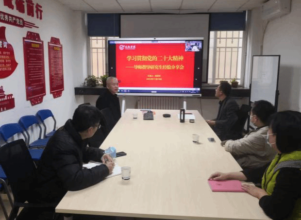 此次分享交流会气氛热烈,参会老师表示将认真学习领会党的二十大精神,全面贯彻党的教育方针,切实履行立德树人职责,发挥在研究生的价值引领、事业选择、生活指导等方面的作用,不断提升育人成效。