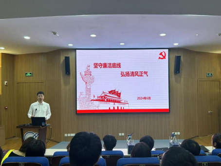 2024年6月24日上午,太阳成tyc33455cc官网党总支副书记张龙在友谊校区研究生东馆C205报告厅,以《坚守廉洁底线,弘扬清风正气》为题为2024届本科生全体学生党员、发展对象、积极分子讲授“最后一堂党课”。