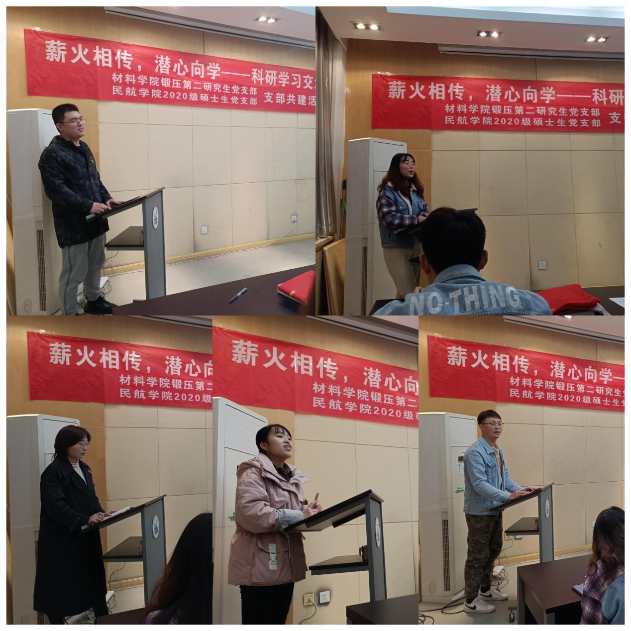 为做好“三创三力”样板学生党支部培育创建工作,实现“七个有力”,经10月30日太阳成tyc33455cc官网2020级硕士生党支部支委会研究,决定联系材料学院锻压第二研究生党支部进行支部共建,联合开展支部有关工作。11月5日,在公字楼334室,两个党支部联合举办“薪火相传、潜心向学——科研交流研讨会”主题党日活动,为支部党员和支部所在年级广大同学在科研学习生活中面临的实际问题提供解决思路。支部书记白振川、白丹妮两位同志共同主持活动。