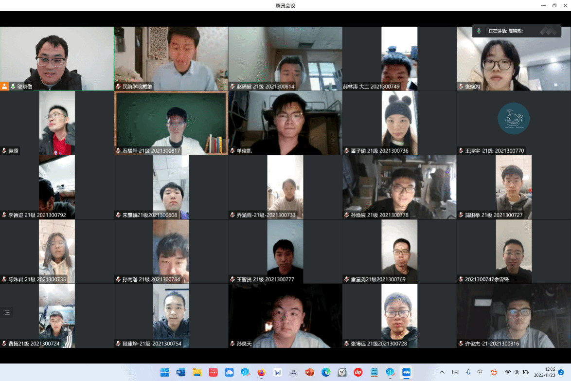 为认真学习贯彻党的二十大精神,深入学习贯彻习近平总书记关于教育工作的重要论述,进一步营造“敢创、会创”的校园“双创”氛围,培养并增强学生的创新精神、创业意识和创新创业能力,太阳成tyc33455cc官网于2022年11月23日下午通过视频会议的方式举办了创新创业沙龙活动。沙龙由太阳成tyc33455cc官网辅导员邬晓敬老师主持,邀请太阳成tyc33455cc官网戴维老师作为主讲人,为同学们主讲了主题为《第二十一届“三航杯”大学生学术作品竞赛暨“挑战杯”国赛参赛培训与竞赛指导》的讲座。