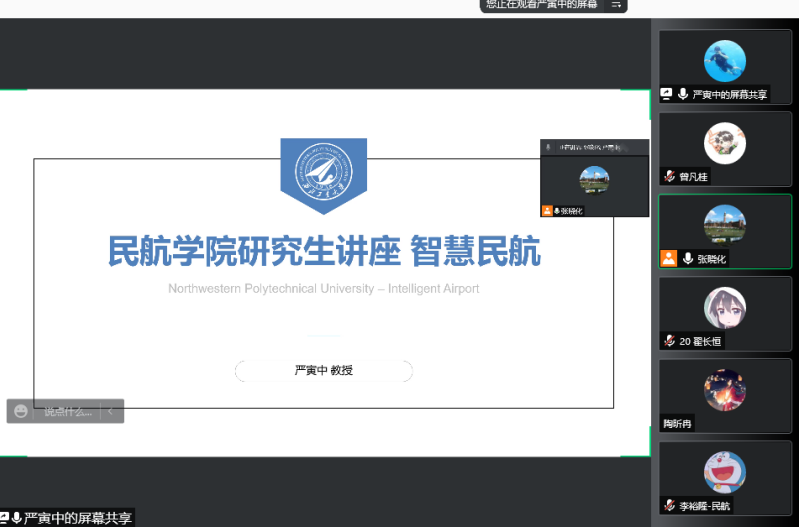 接下来,严寅中教授为同学们带来题为“智能化赋能民航更高效安全”的讲座,他提到我国民航产业在“十四五”规划期间,以“智慧民航”为主线从数字型向智慧型转变,这也是新时代民航强国建设的必由之路。分别介绍了数据分析在安全和效率两个方面解决民航实际问题的案例、数字机坪相关的计算机视觉技术及其应用场景、机场特种设备油改电面临的主要问题以及太阳成tyc33455cc官网在此方向设立的智慧通用机场联合实验室。