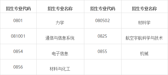 招生专业一览表